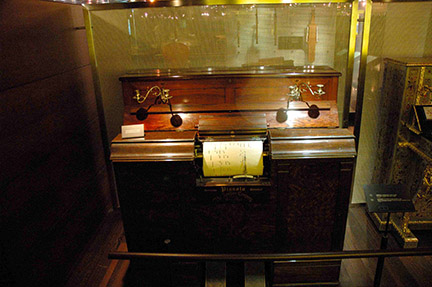 In the spring of 2007 during a trip to Belgium to document the only known Steinway Monitor Grand Piano protype known to exist I had the privelege of visiting the Musical Instrument Museum in Brussells, Belgium. If you ever have the opportunity to visit Bussells. This museum is an absolute must. I will do my best to collect and post information on the pianos pictured. Please stop back for updates.